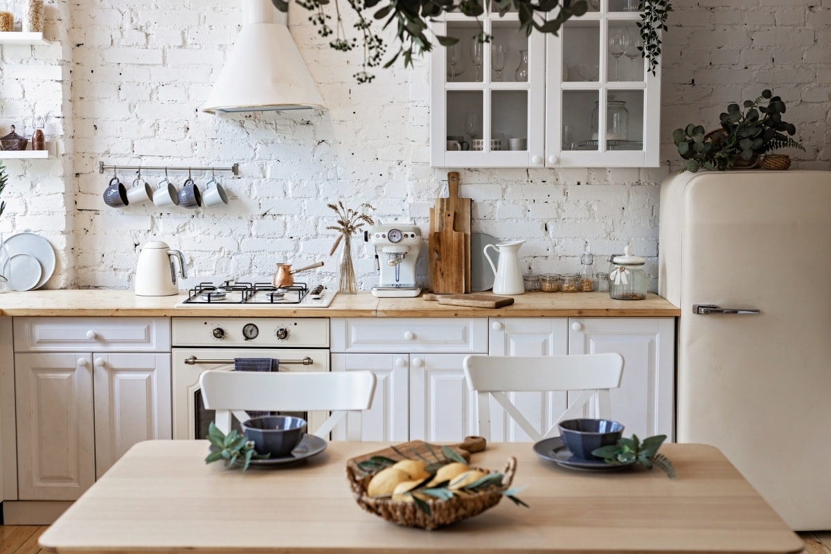 Oczywiście chęć zastosowania drewna w kuchni nie obliguje nas do wykonania całej zabudowy kuchennej z tego materiału. Równie dobrze może to być tylko jeden z elementów wyposażenia: drewniany blat, ciąg szafek górnych albo urocza witrynka stojąca gdzieś obok. Popularnym rozwiązaniem są meble kuchenne biały połysk z drewnem – biel optycznie powiększa pomieszczenie, a drewno daje wrażenie ciepła i przytulności. Równie dobrze sprawdzają się meble kuchenne białe matowe z drewnem – z tą różnicą, że na matowej powierzchni frontów odciski palców są mniej widoczne niż na błyszczącej. Równie udanym zestawieniem jest drewno z czarnym kolorem – ponadczasowym i eleganckim jak biel. Świetnym sposobem na ożywienie kuchni może być drewniana ściana stanowiąca tło dla jednobarwnych mebli.
