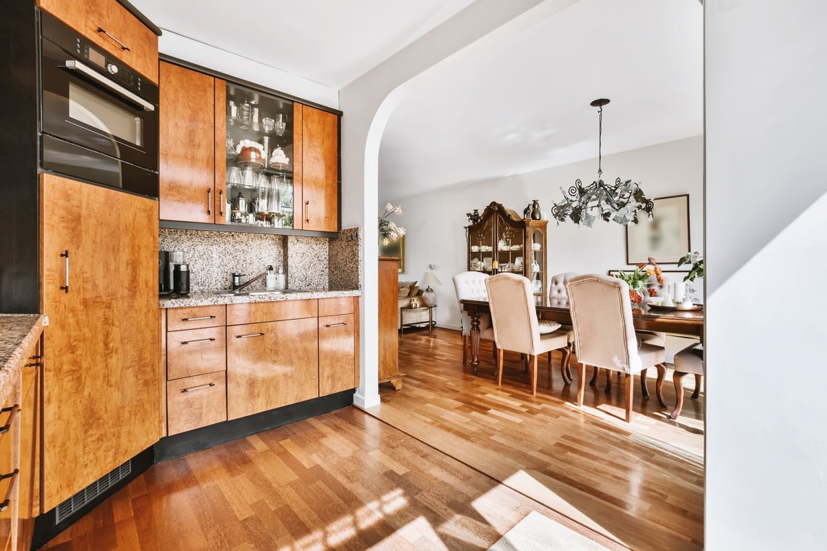 Okleiny naturalne doskonale sprawdzą się w kuchniach z klasycznym sznytem, w kuchniach w duchu japońskiego minimalizmu, świetnie uzupełnią mieszkanie urządzone w stylu skandynawskim, a nawet glamour. Z kolei forniry modyfikowane będą doskonałym rozwiązaniem w bardziej awangardowych aranżacjach – często spotykany mocniejszy rysunek drewna raczej nie sprawdzi się w spokojnej kuchni w stylu klasycznym, ale pokocha go wnętrze urządzone na modłę pop-art’u. Warto przy tym zwrócić uwagę, by na kolejnych frontach zachowana była ciągłość usłojenia, co eliminuje wrażenie przypadkowości i chaosu – zwłaszcza przy bardzo wyrazistych fornirach. Okładziny czeczotowe, bardzo dekoracyjne i raczej dalekie od subtelności świetnie sprawdzają się jako niewielkie wstawki i nie są polecane do wykorzystania w dużych formatach na całych meblach kuchennych.