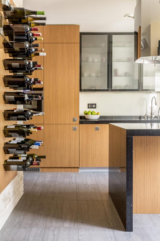 Barek w kuchni rozumiany jako miejsce do przechowywania alkoholu może przyjąć różnoraką postać. Może to być zamknięta przed wzrokiem osób trzecich szafka lub elegancka, przeszklona witryna. Dla koneserów jedyną słuszną opcją będzie specjalna chłodziarka na trunki, a alkoholowym ignorantom wystarczy wydzielona półka (lub nawet tylko jej część) w szafce kuchennej. Dla osób, które jednak chciałyby wyeksponować swoją kolekcję trunków, najprostszym rozwiązaniem będzie specjalny regał na butelki. W zależności od konfiguracji półek butelki mogą stać lub leżeć. Butelki stojące sprawdzą się na płytkich półkach, gdyż nie zajmują dużo miejsca – sprawdzą się więc na ograniczonej przestrzeni. W przypadku butelek leżących należy dla nich przeznaczyć minimum 30cm na głębokość – taki wymiar jednocześnie podsuwa myśl, że szafka na alkohol doskonale odnalazłaby się w ciągu szafek górnych. Do bardziej zaawansowanych rozwiązań należy witryna na alkohol. Przeszklona, a nawet podświetlona pozwoli wyeksponować każdą kolekcję szlachetnych trunków. Może jednocześnie służyć do przechowywania dedykowanych naczyń: kieliszków, szklanek, karafek, a nawet coolera (czyli specjalnego wiaderka na lód do schładzania alkoholu). Miejsce przeznaczone na alkohol może znajdować się w ciągu mebli kuchennych, ale może też stanowić ciekawe zakończenie zabudowy – szczególnie jeśli kuchnia połączona jest z salonem i barek stanowi jednocześnie granicę i łącznik tych dwóch pomieszczeń.