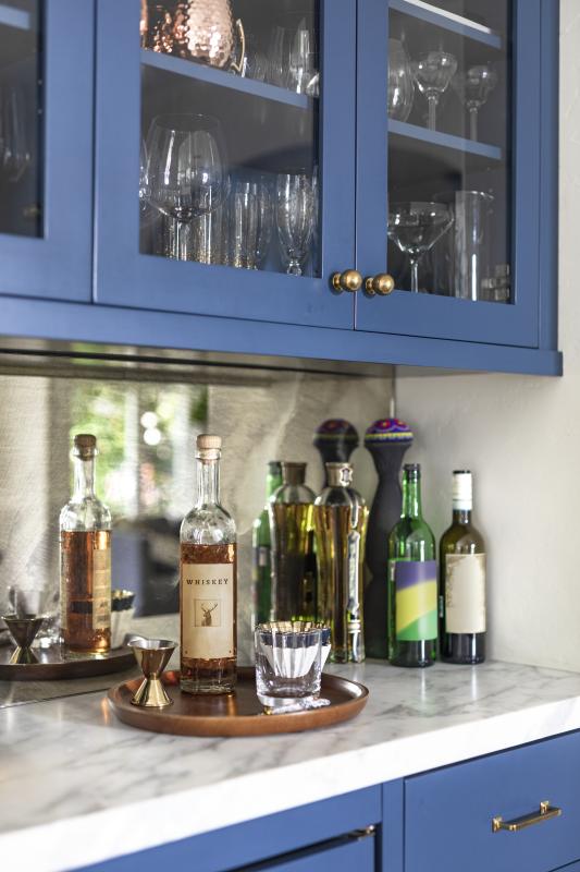 Dla tych, którzy nie chcą przeznaczać miejsca na alkohol w zabudowie kuchennej, dobrym rozwiązaniem może być osobny mebel – niewielka szafeczka lub stolik, najlepiej na kółkach, co jest szczególnie wygodne podczas imprez. Zaletą osobnego mebla jest bowiem jego mobilność i możliwość przestawienia zgodnie z aktualnymi potrzebami. Mobilność mebla ułatwia również sprzątanie w jego okolicy. Podobnie jak w przypadku wyżej opisanej witryny taki mebel może służyć do przechowywania zarówno butelek z trunkami, jak i naczyń. Dodatkowo w jego obrębie może znajdować się niewielka szufladka na drobne akcesoria typu szczypce do lodu lub mieszadełka do drinków. Zwolennicy perfekcyjnie urządzonych wnętrz docenią również możliwość dopasowania go do stylu domu. Funkcję barku rozumianego jako miejsce do przechowywania alkoholu mogą też pełnić zwyczajne, proste półki ścienne. W wersji budżetowej mogą być wykonane nawet z elementów palet.