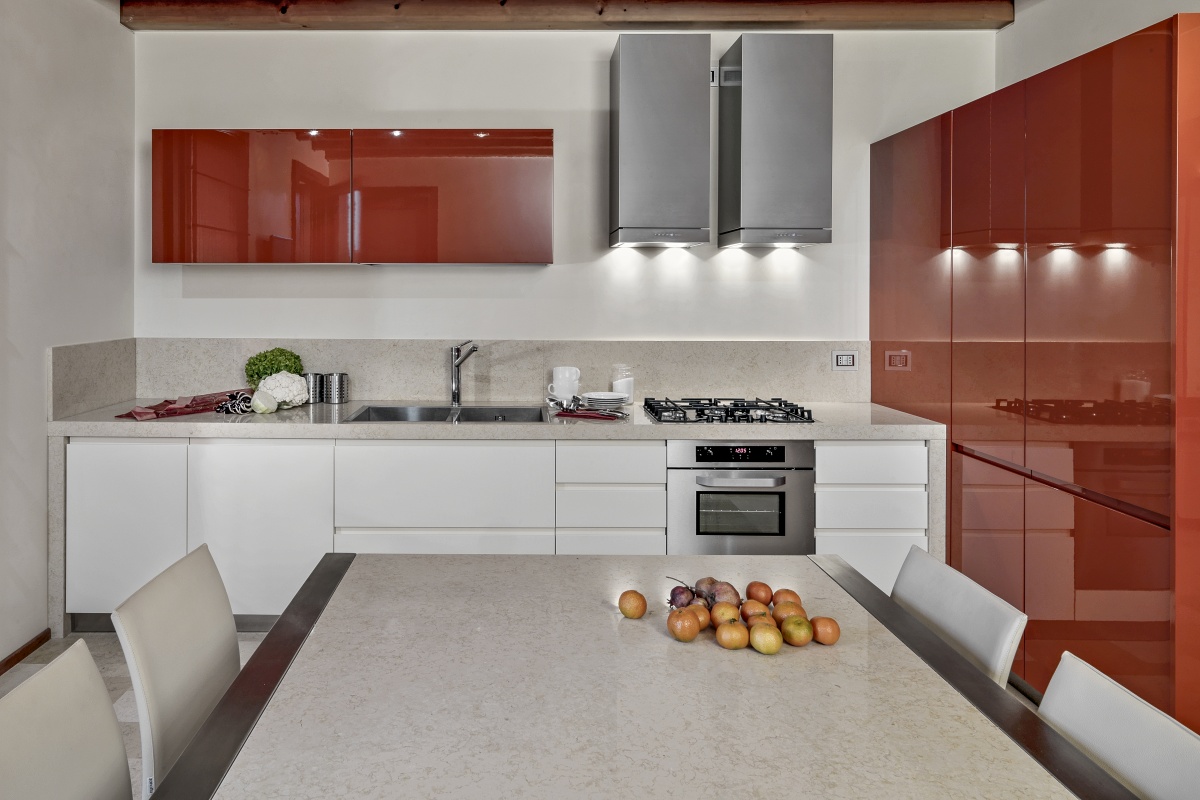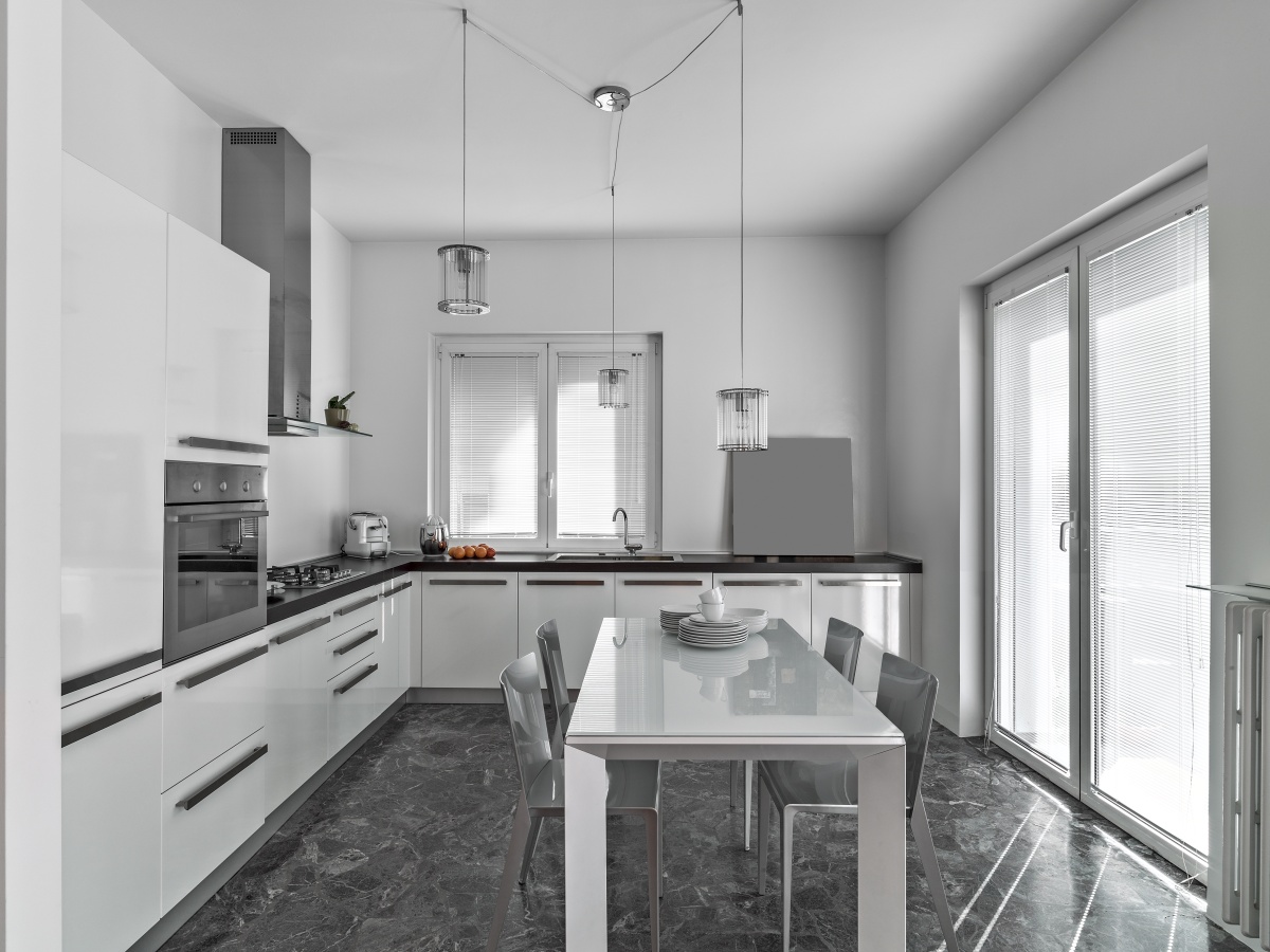 Jeśli naszym wyborem będą nowoczesne meble kuchenne połysk na frontach sprawdzi się tu wyśmienicie. W dużych, dobrze oświetlonych światłem dziennym pomieszczeniach meble kuchenne z połyskiem dają spektakularny efekt: dodatkowo odbijają światło, optycznie powiększając pomieszczenie. Z kolei meble kuchenne matowe to światło pochłaniają, nie dając efektu zwierciadlanego. Jeśli więc zależy nam na efekcie „WOW!”, to lepszym wyborem będzie kuchnia w połysku. W przypadku trudności z wyborem stopnia połyskliwości frontów, można pokusić się o zastosowanie obu opcji. Meble kuchenne dwukolorowe odchodzą powoli do lamusa – ich miejsce zajmują kuchnie jednokolorowe, ale o zróżnicowanej połyskliwości wykończenia powierzchni i odmiennych fakturach. Tym samym w jednej kuchni spotkać można fronty matowe i w połysku, nierzadko połączone również z frontami ramiakowo – płycinowymi w tym samym kolorze. To totalne zróżnicowanie w obrębie jednej kolorystyki sprawia, że kuchnia nie jest monotonna, tylko co krok przyciąga wzrok.
