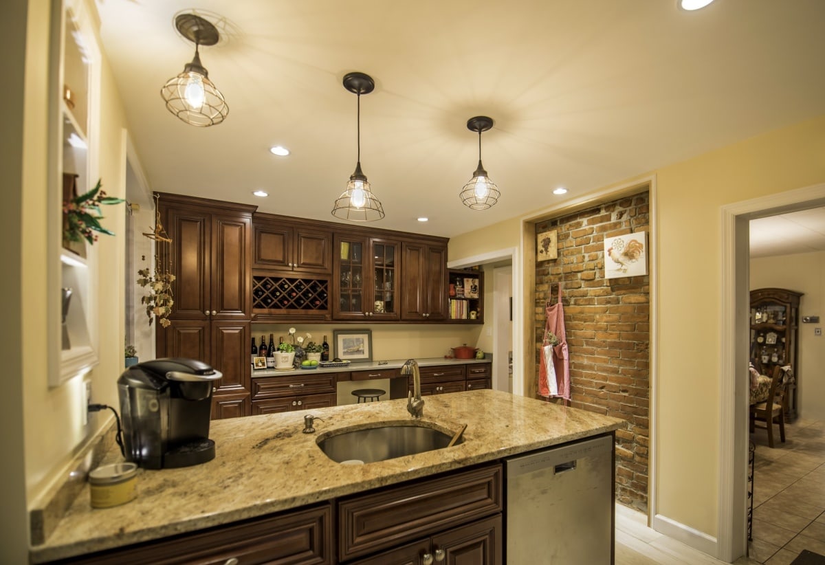 Drewniane meble kuchenne to baza klasycznej kuchni – tradycyjne, solidnie wykonane, będą służyć swojemu właścicielowi na długie lata. Choć dziś meble z litego drewna są rzadkością, są godnie zastępowane przez meble fornirowane. Pewnym substytutem kuchni klasycznej mogą być również meble kuchenne w kolorze drewna, ale wykonane z płyty laminowanej – oczywiście będzie to tylko zamiennik mebli drewnianych. który daje dużo mniej możliwości aranżacyjnych, ale jest bardziej przyjazny dla portfela. Trzeba pamiętać, że z płyty laminowanej da się wykonać jedynie płaskie fronty – nie ma więc mowy o żadnych frezowaniach czy innych zdobieniach. Elementami, które pomogą trochę nadrobić te stylistyczne braki, mogą być pozostałe charakterystyczne detale w postaci ozdobnych uchwytów czy przeszkleń ze szprosami. Bardzo istotne jest również tło: jasne, stonowane, bez krzykliwych barw. Nie ma tu więc mowy o pomarańczowych ścianach czy tapecie w pstrokate wzory. To ściany mają stanowić tło dla zabudowy kuchennej – nigdy odwrotnie. Dopełnieniem całościowego obrazu klasycznego wnętrza będzie kamienna podłoga i elementy wykończenia wysokiej jakości: ceramiczny lub stalowy zlew osadzony w kamiennym blacie, mosiężne baterie zlewozmywakowe oraz mięsiste tkaniny.