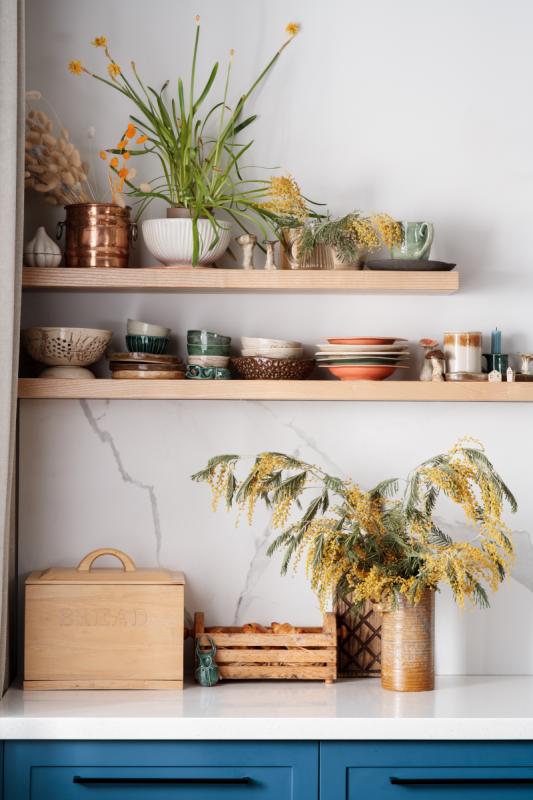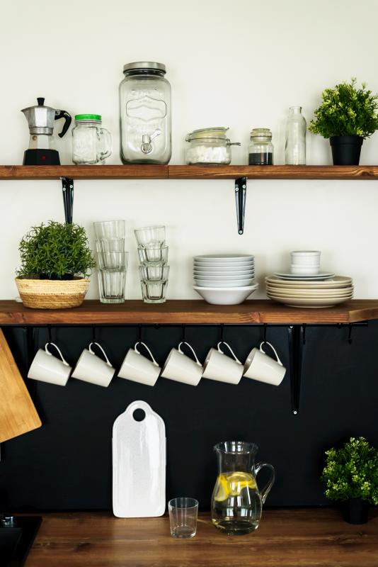 Dla niektórych kwiaty i tekstylia, dla pozostałych sztuka, a dla jeszcze innych kolekcja ulubionych naczyń będą sposobem na dodanie wnętrzu odrobiny ciepła. Choć pewnie zewsząd uniosą się głosy krytyki, że dla takich „kurzołapów” nie powinno być miejsca w tym pomieszczeniu, to np. półka w kuchni z interesującą zastawą może być ciekawym środkiem urozmaicającym kuchenne środowisko. To nie musi być drogocenna porcelana ani wysmakowana kolekcja rzadkich talerzy – w roli eksponatów doskonale sprawdzą się nasze codzienne, ładne kubki, które łączy jakaś wspólna cecha (np.kształt czy paleta barw). Taka półka może też być użyteczna: jeśli w jej obrębie skompletujemy akcesoria do kawy (np. kubki, ładne puszki z kawą, kawiarkę), to w jednym miejscu stworzymy wygodny kącik kawowy z bardzo łatwym dostępem do najczęściej używanych kawowych akcesoriów. Wygoda i uroda w jednym. Dla osób lubiących gotować półka to z kolei doskonałe miejsce na trzymanie najbardziej potrzebnych przypraw, które zawsze muszą być pod ręką. Umieszczona w pobliżu płyty kuchennej usprawni proces gotowania i pozwoli na wygodne kontrolowanie dostępności produktów. Półki do kuchni wiszące zdecydowanie dodają lekkości wnętrzu i „odciążają” zabudowę kuchenną, sprawiając, że nie jest tak przytłaczająca.
