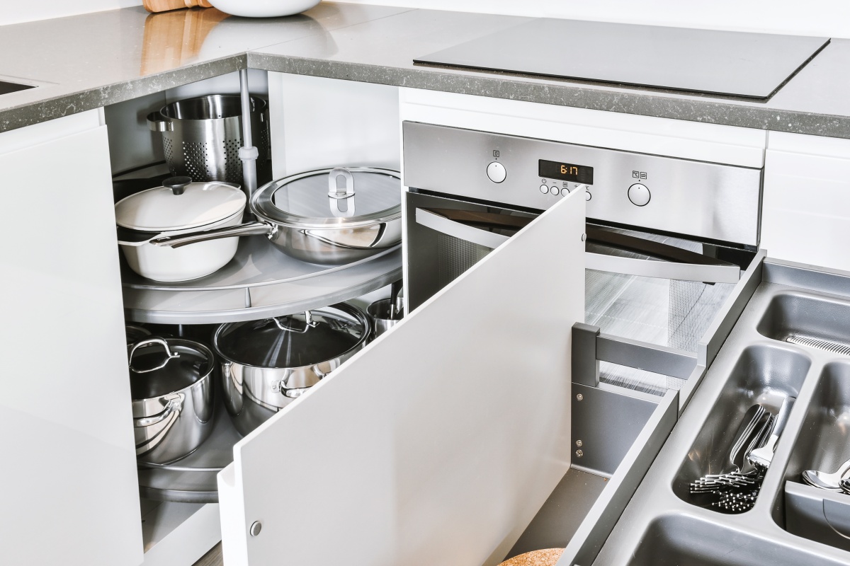 Wkłady na sztućce, organizery na talerze, stojaki na patelnie, pokrywki do garnków lub deski kuchenne, maty antypoślizgowe do szuflad, kosze do segregacji odpadów, podnośniki w szafkach górnych, szczelne pojemniki do przechowywania produktów spożywczych, carga podszafkowe i wysokie, systemy do organizacji przestrzeni w szufladach, krajalnica chowana w szufladzie, specjalne szuflady do przechowywania drobnego sprzętu AGD, blat stołu chowany w szufladzie, elektryczne otwieranie szafek kuchennych – to naprawdę praktyczne rozwiązania w kuchni. Część z nich to przedmioty funkcjonalne, choć bardzo proste w budowie. Inne to skomplikowane i kosztowne mechanizmy. Łączy je fakt, że wszystkie one pozwalają ujarzmić kuchenny rozgardiasz.